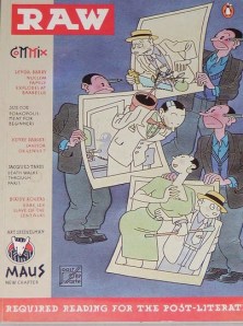 This was how I came into possession of my first issue of RAW. This 1990 issue, “Required Reading for the Post-Literate” was the second to last issue of the series published by Art Spiegelman (of Maus fame) and Francoise Mouly. This issue was printed (by Penguin) as a perfect bound book with full color pages (except for some b & w comics) with some differing paper stocks. A beautiful book, especially considering most previous issues were printed in black and white with stapled binding.