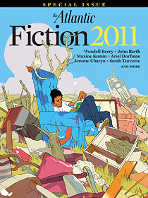 The $6.99 cover price did make me pause, the magazine was very slim (but also sparsely inhabited by ads) and I haven’t been a huge fan of The Atlantic in the past. Two things made the choice for me: I really needed something else to read on the plane besides F. Scott Fitzgerald’s This Side of Paradise and the cover art. The cover art shows a grungy young man in a gross armchair reading in what looks like a garbage dump. Perched atop the chair is a cat and in the background a bright blue sky. Something about this image really appealed to me and made me want to see what else was inside.